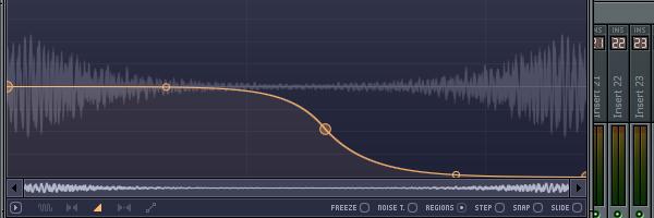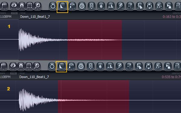 If you don’t like messing around with fade buttons, you can also just draw in an amp envelope yourself. In the bottom left of Edison, click the little triangle and start making curves. You’ll want the ‘fake tail’ portion of the sound to fade out naturally, but the reversed transient to be completely silent. Press Ctrl+E when you’re happy with it to apply the envelope.