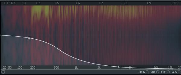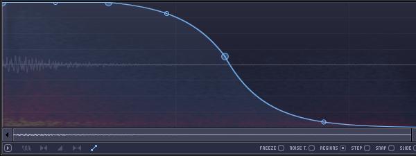 You might find the higher frequencies of your drum sound ‘wooshing’ back even after you’ve faded it out. To fix this, we’ll use Edison’s handy ‘Undo mix (envelope)’ feature. This lets you control the mix level between the audio as it is presently and how it was at an earler time in the undo history. We’ll equalize the whole sound to get rid of the unwanted high frequencies and then undo the equalization by a varying amount over time with an envelope. Basically, the envelope controls the wet/dry level of the equalizer so that we can leave the beginning of the sound alone but gradually reduce the level of the offending frequencies.