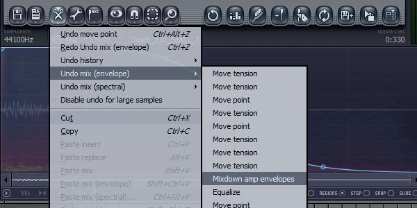 Click the scissors to bring up the tools menu and go into the ‘Undo mix (envelope)’ section. Click the undo point that is directly above the equalizer undo, because we want to revert to before the EQ. If it doesn’t sound right, hit Ctrl+Z, tweak the envelope a bit and try again.