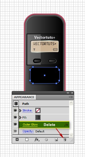 Copy the shape from the previous step, change the color to black and delete the Outer Glow effect. To do this, open the Appearance panel (Windows > Appearance, or Shift + F6) and drag the "Outer Glow" layer into the delete bin.