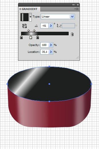 Create an ellipse over the previous shape and fill it with a Linear Gradient as shown in the example below.