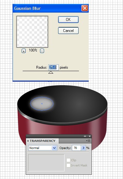 Create a white ellipse and position it as shown in the picture below, apply a 25px Gausian Blur and reduce the Opacity to 70%.