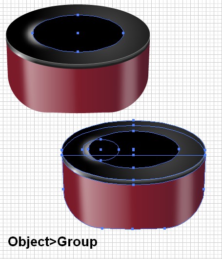 Over all the other shapes, create a black ellipse Select all the shapes and group them by going to Object > Group. Have a look at the picture below for reference.