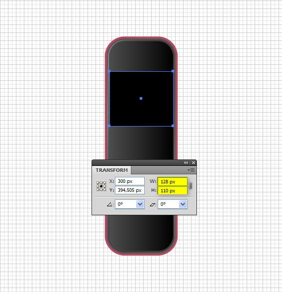 Create a black rectangle with the dimensions 128px by 110px, position it as shown in the picture below.