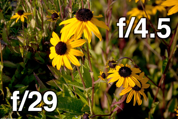 You can manipulate the depth of field in your photographs by adjusting your aperture. A wider aperture produces a shallower depth of field and a narrow aperture produces greater depth of field. As an example, consider the spliced image below. According to the photographer, the left portion was shot at f/29 and the right portion at f/4.5.