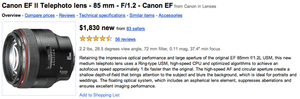 Short of a pirated copy of Photoshop and the Lens Blur filter, this is by far the cheapest way for Canon users to achieve nice blurry backgrounds in their photos (around $100 brand new).