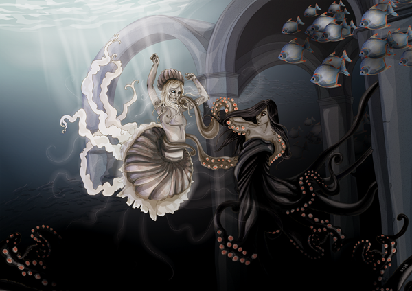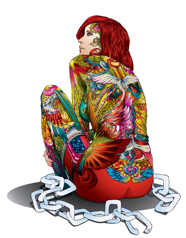 What makes this piece even more amazing is the fact that it has started out as a traditional piece and then was brought into vector. The vector element of it is used to enhance the theme and not be the default medium of choice.
