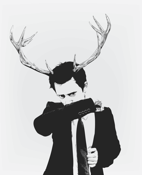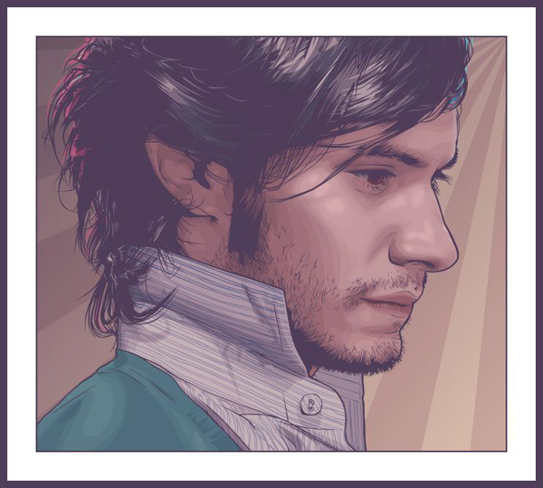 The use of creative line shading helps this piece. With it’s monotone palette, it relies strictly on the curves and delicate lines to shape the illustration. Using the lines not only to create shadow, it takes away some of the gray to show highlights, which can be seen in the tie and shirt.