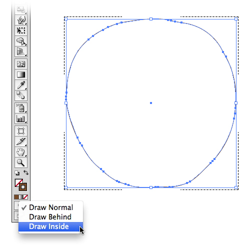 To access the different drawing modes (Normal, Behind and Inside), click their respective icons at the bottom of the Tool panel. If you prefer to arrange your tools in a single column, there’s a flyout menu there. You can also press Shift + D to cycle between the modes.