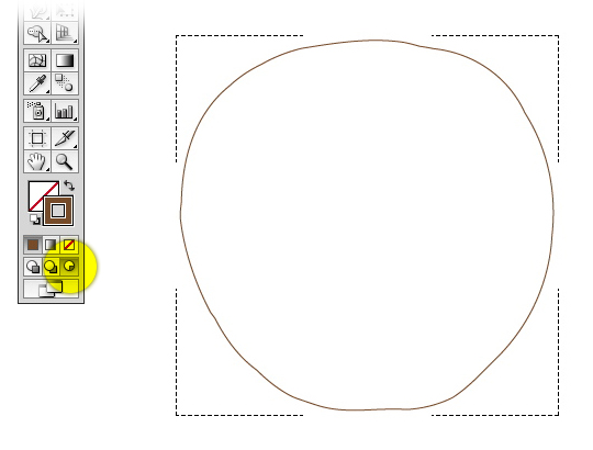 Select the apple shape, then choose Draw Inside. The shape will now have dotted-lined corners around it to indicate that this is the clipping object. Draw Inside essentially makes a clipping mask from the object before you draw. Whereas in earlier versions, you might draw some objects, then place another object on top to make a clipping mask, Draw Inside lets you work more intuitively, and see your clipped items in real time. As with a regular clipping mask, it can be released by going to Object > Clipping Mask > Release, or by using the keyboard shortcut Command + Option + 7 (PC: Control + Alt + 7).