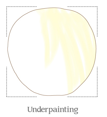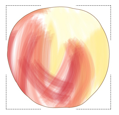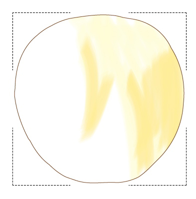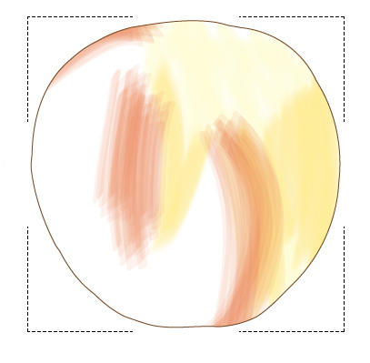 Now just start drawing strokes on the yellow part of the apple. This will be the "underpainting". Since Bristle Brushes contain transparency, it is possible to build up nice layers of texture. Note that different brush strokes will interact in this way, but if you just use one brush and scrub back and forth, it wont build up. In other words, a single brush stroke does not interact with itself.