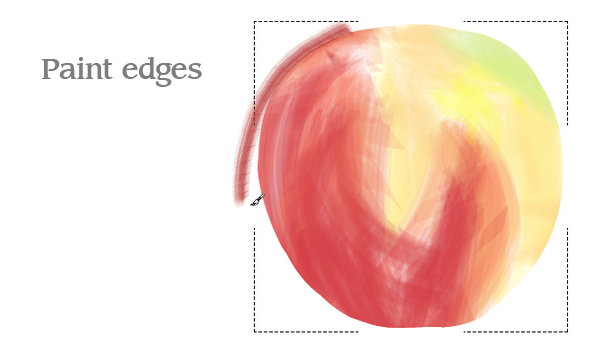 Feel free to "color outside the lines." Since you’re drawing inside the apple shape, it’s easy to add darker strokes to the edge of the shape, to give the apple some dimension. Just paint slightly outside the apple’s path, so that just a little bit of the brush stroke shows through. Continue painting in the reds. If you want a darker stroke, you can change the opacity on the fly by using the numeric keys: 1 for 10%, 2 for 20% and so on.