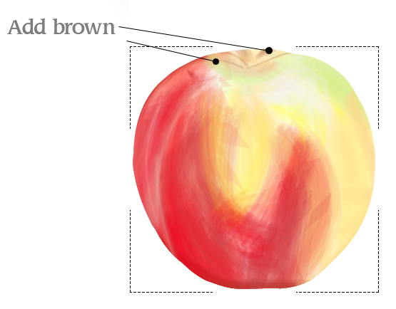 Create a new Bristle Brush (or modify an existing one) that’s smaller and denser for the part of the apple surrounding the stem. Choose a brownish color and paint a few strokes going from the center top to the edges of the apple.