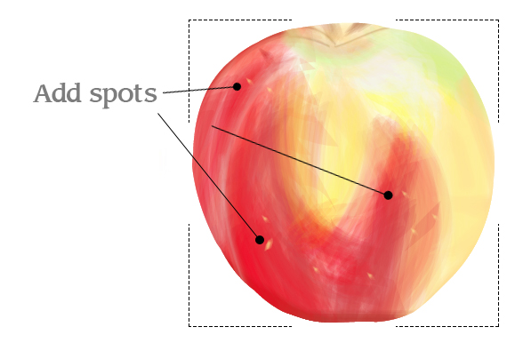 Use the same thinner brush to dab some dots on the apple with a lighter yellow color. Adjust the size and/or opacity as needed, using the keyboard shortcuts.