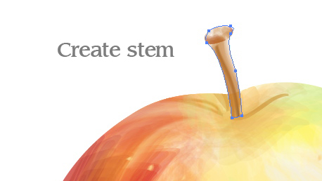 Once the apple is finished, create the stem in the same way. Draw an outline of the stem with the Pen tool, then choose Draw Inside as the drawing mode, and paint with various shades of brown. Important: Be sure you are finished with the apple before proceeding. Once a different object is targeted for Draw Inside, the previous one loses that capability.