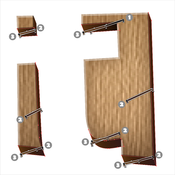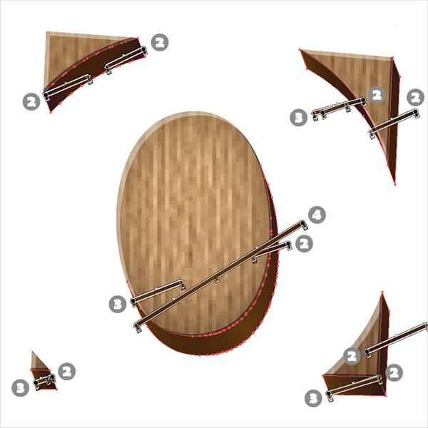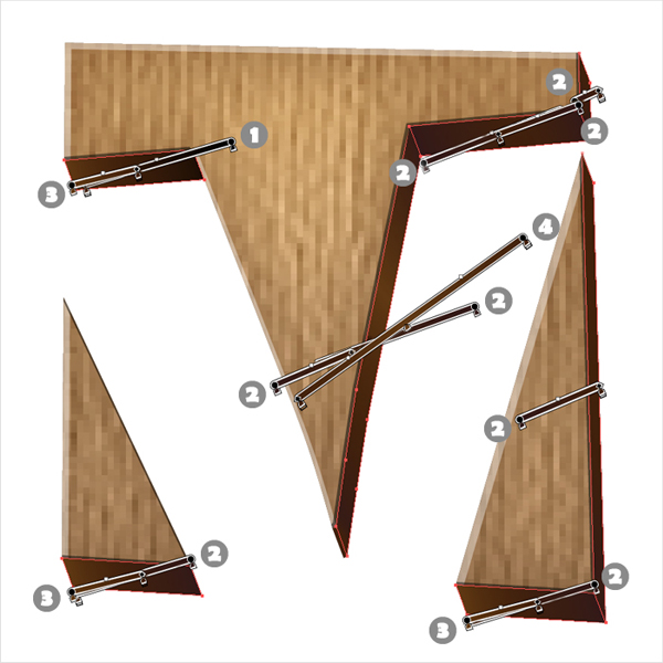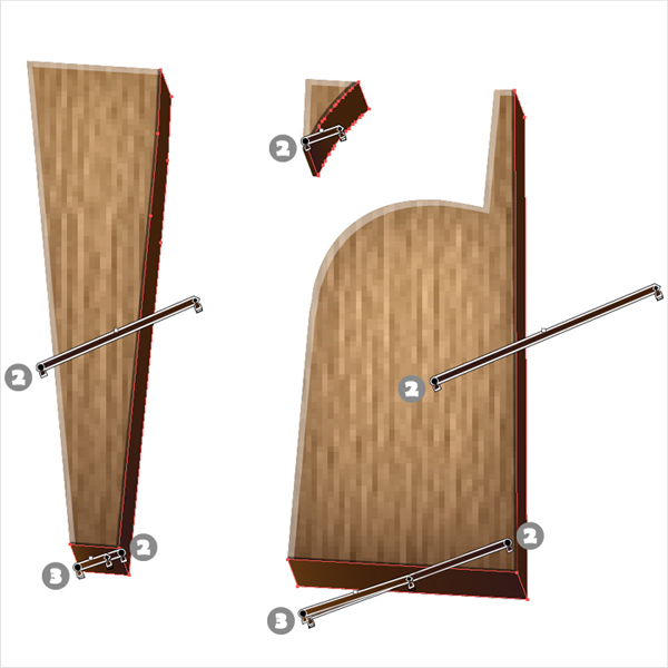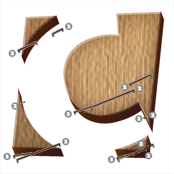 Repeat the same techniques for the rest of the top shapes. Select all these thin shapes and group them. Bring this new group to the front (Shift + Control + Right Square Bracket). Turn "Wood" back to visible then lock both groups.