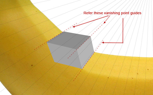 We are now done setting the vanishing point. After that, we’ll draw a rough structure of deck. Let’s start from the front part, create a layer group and name it "Front Part" after that create a dotted line in Illustrator and import it into the Photoshop file. Decide the area where floors to be made.