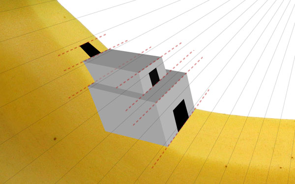Now we will create window light coming from inside. Create an ellipse of color #ffd200 and set blending mode to overlay. Duplicate this ellipse, again duplicate the ellipse and now set its opacity to 30%. Group all ellipses and name it "window light", duplicate this group to give light other windows too.
