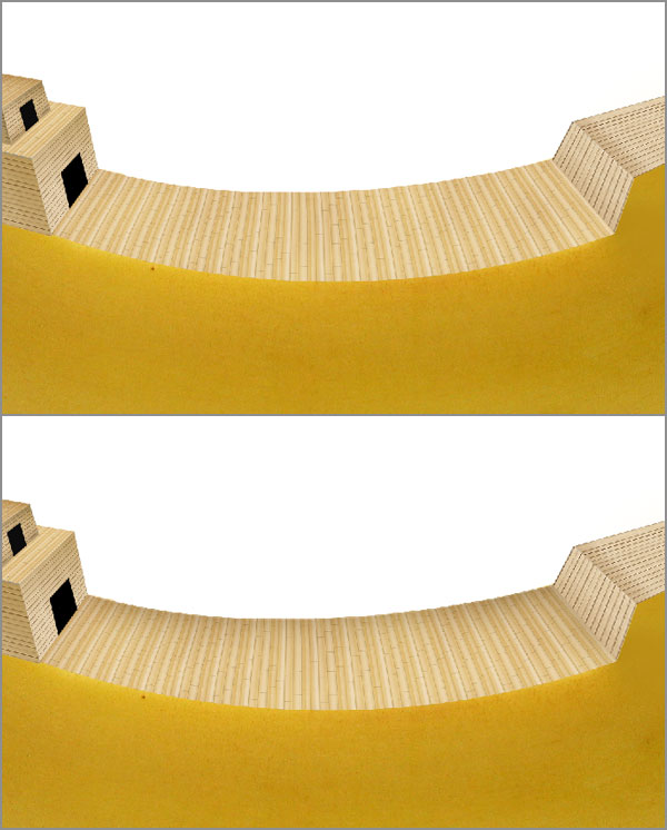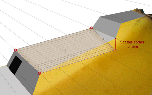 Now its time for texturing the deck. Open "wood 3.jpeg" and import it into document and name this layer "wood floor". Press Cmd/Ctrl + T to Free Transform this layer, press Cmd/Ctrl and click on corners and transform it to make wooden floor.