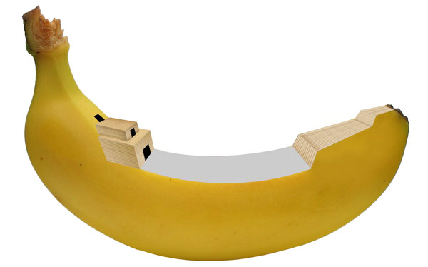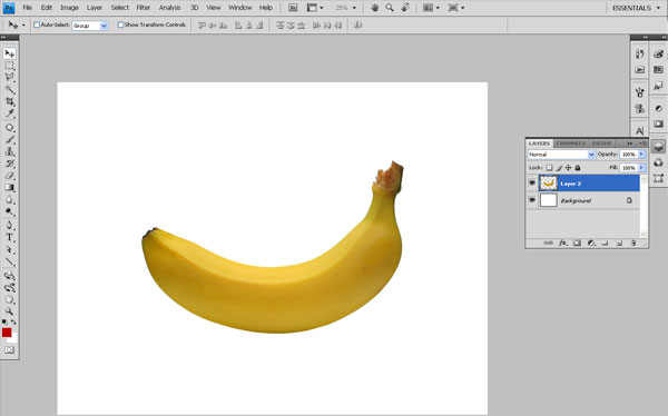 Open "banana.jpeg", select Magic Wand Tool (W) and remove its background. Now import this image to your document and name the layer "banana".