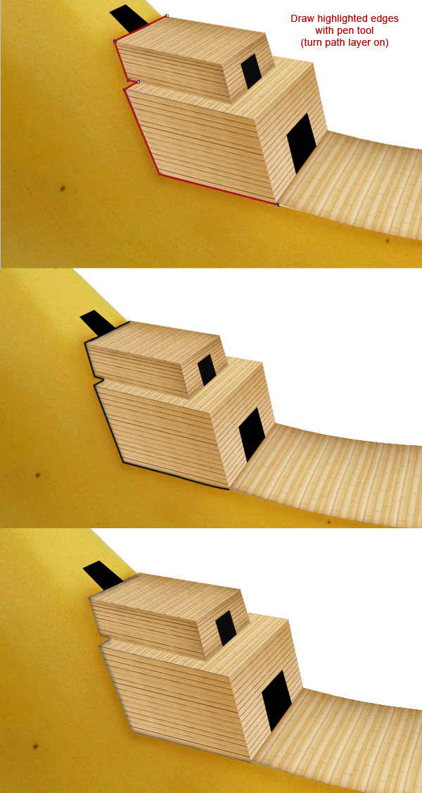 Next, create the middle floor by Pen Tool (P), now the whole deck structure is ready for texturing and it will look like this.