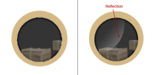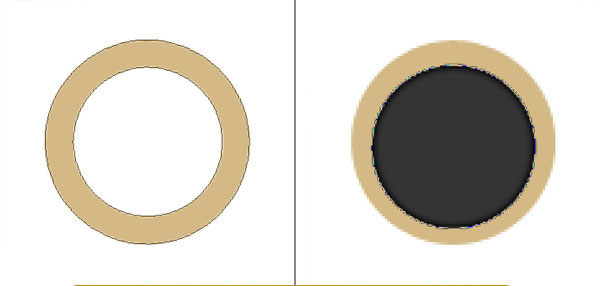 Create a new Photoshop file, select Ellipse Tool (U) and create an Ellipse of width & height 79px and color #d3b986. Press Alt and create small ellipse inside large ellipse, this will subtract small ellipse area from large ellipse. Name this shape layer to "Window back". Create another black ellipse of dimension 64px above "Window back" layer; name this as "Glass".