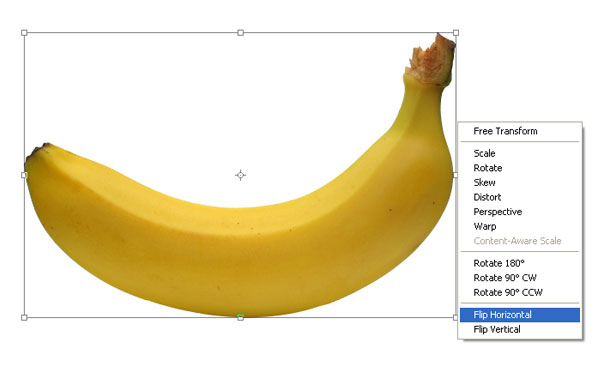 Press Cmd/Ctrl + T to transform banana layer. Then, Right click > Flip Horizontal to change the direction of layer.