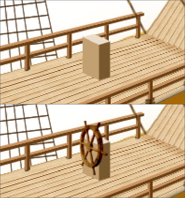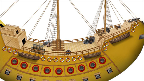 Enhance the deck by adding some stuff like barrels, boxes, ropes, cannons etc.