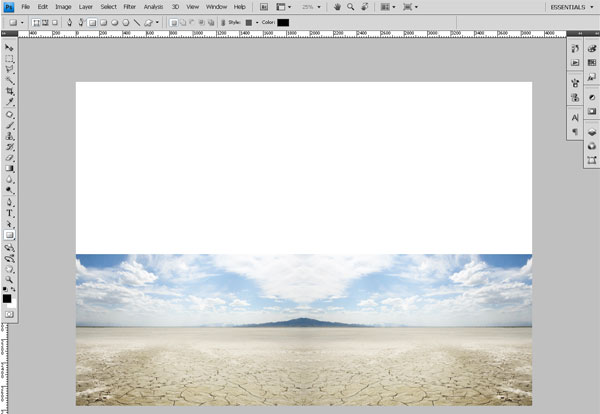 Open "land.jpeg" in a new file of size 3300 x 2500 px, duplicate it and extend to maximum width. Merge the layer, duplicate it and set blending mode to screen. Merge layers and name these layers as "land".