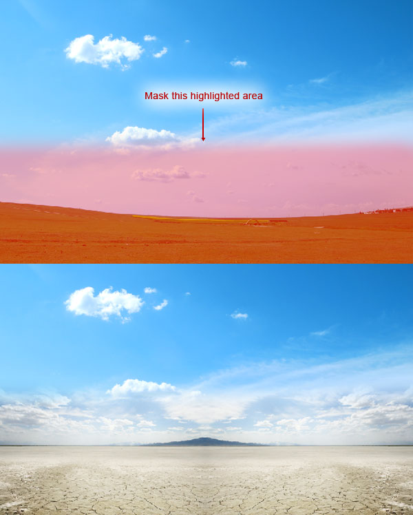 Next open the "cloud.jpeg", add layer mask to hide the lower part of the image.