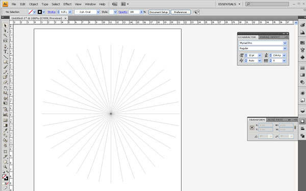 Now to make our art proportionally balanced, set a vanishing point. This is a one vanishing point image. To create vanishing point open Adobe Illustrator and choose a blank document. Select Line Segment Tool (\) and create line of length 30cm, keep its weight 0.25 pt then select the line and go to Right click > Transform > Rotate, set the angle to 10 and press "Copy" button.