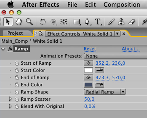 Create a new “Main Comp: and put Film composition inside.