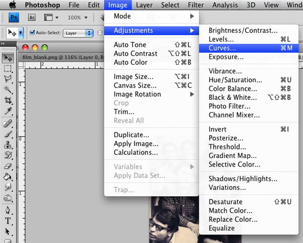 Go to ‘Image’ > ‘Adjustments’ > ‘Curves’