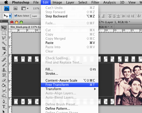 Let’s place the pics in the right places now. In each blank space, put one photo. And readjust with the free transform tool. Go to ‘Edit’ > Free Transform’ or just press control+T (for pc) or command+T (for mac).