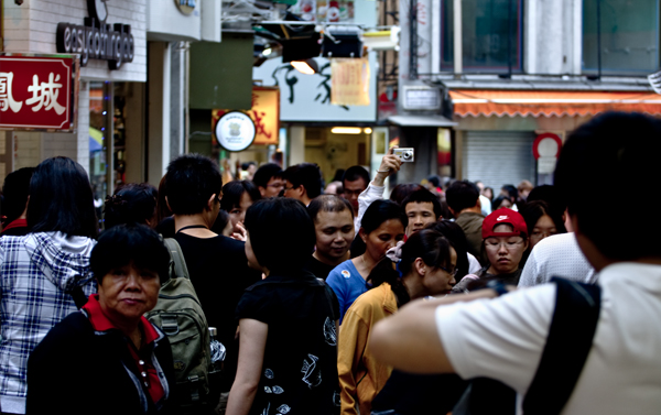I headed out on a Sunday in Macau, the busiest day of the week, in order to capture people enjoying the old town. In-between feeling like a sardine in a can, I was able to fire off some shots of the people. Shooting at a aperture of f4.0 this allowed me to capture a shallow depth of field. If you have a lens which goes lower, such as a 50mm prime. I would advise using that.