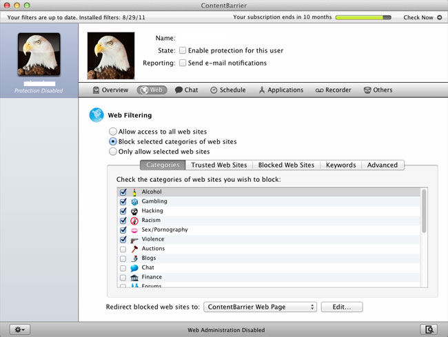Control what parts of the Internet you want to keep from your children, including adult websites and other inappropriate content.