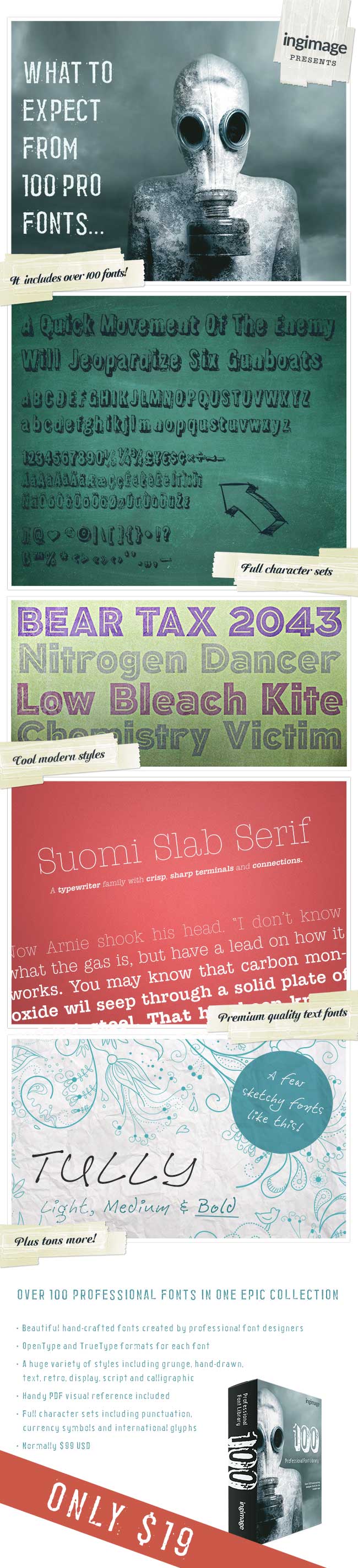 This huge collection of fonts from Ingimage normally sells for $99, but for a limited time only, you can get all 100 fonts for just $19! That’s an 81% savings off the regular price!