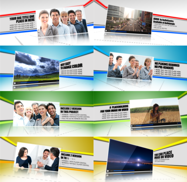 I introduce you to my newest After Effects CS4 Project. This project i make it very clear, elegant and professional, i believe that your customer need to see very clear about your product, service, etc.. use this project for your presentation, slideshow, web, opening, corporate, etc… No third-party plugins needed, very smooth animation, very clean project and professional.