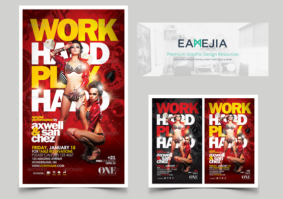 Work Hard Play Hard Flyer Template by EAMejia as part of your promotional campaign.