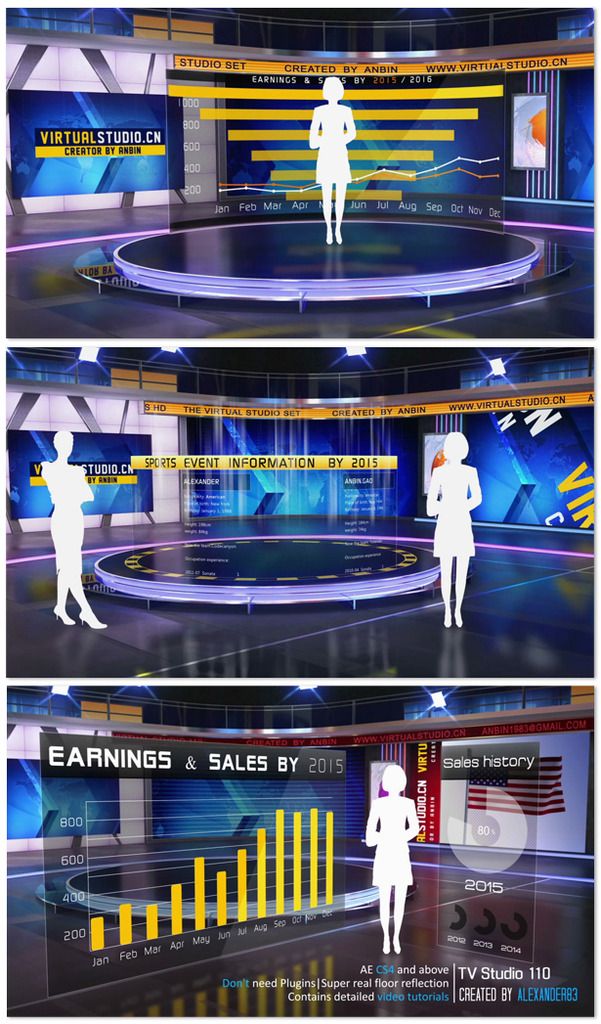 01.Replace your material. 02.Add another announcer. 03.Add another virtual screen. 04.Set virtual studio depth of field and color.