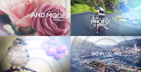 Parallax Slideshow With Titles is a titles package presented as a parallax stylish opener that is perfect for your TV show, photo/video gallery, cinematic trailer or any media opener. The project is simple and well-organized. You can easily change the colour scheme. Customizing the texts and adding your footage is really simple and it renders very fast.