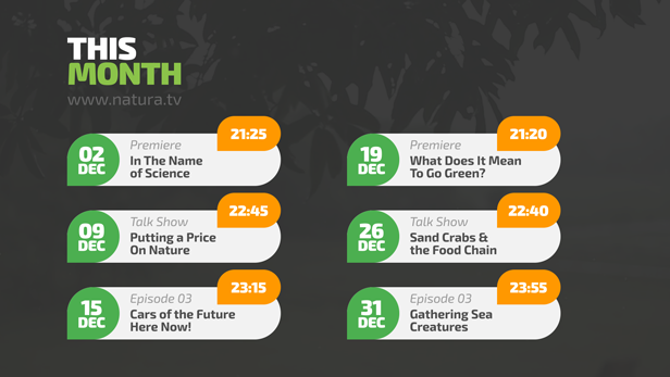 This eco friendly broadcast template will provide you with lots of customize opportunities such as Modular Structure, Color Control, etc. Hope you’ll enjoy this!
