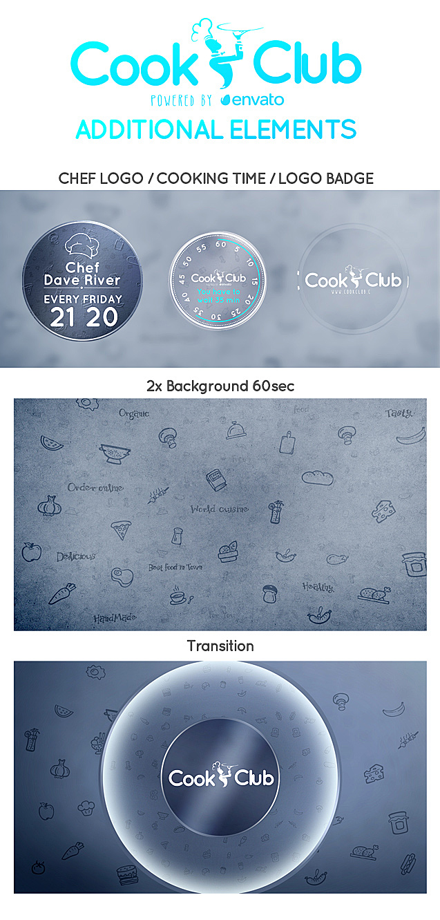 Here is the Modern Cook Club Broadcast ID Project for your Cooking Show, Internet Promo, Broadcast design etc. Show Your video with new exciting futuristic motion graphic, add new vision and realistic Cooking atmosphere to Your video.